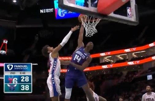翻江倒海!迪亚巴特连续冲击内线暴扣得手 黄蜂领先10分打停76人