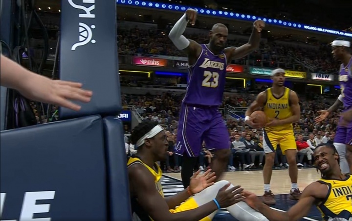 世界名画!詹姆斯欧洲步致步行者两人撞一起摔倒 老詹指着嘲讽