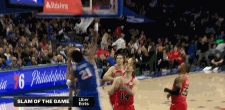身体状态不错!恩比德低位转身杀入内线完成暴力隔扣!