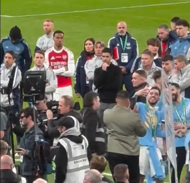 谢尔基领完奖牌后,在失落的阿森纳球员前面自拍