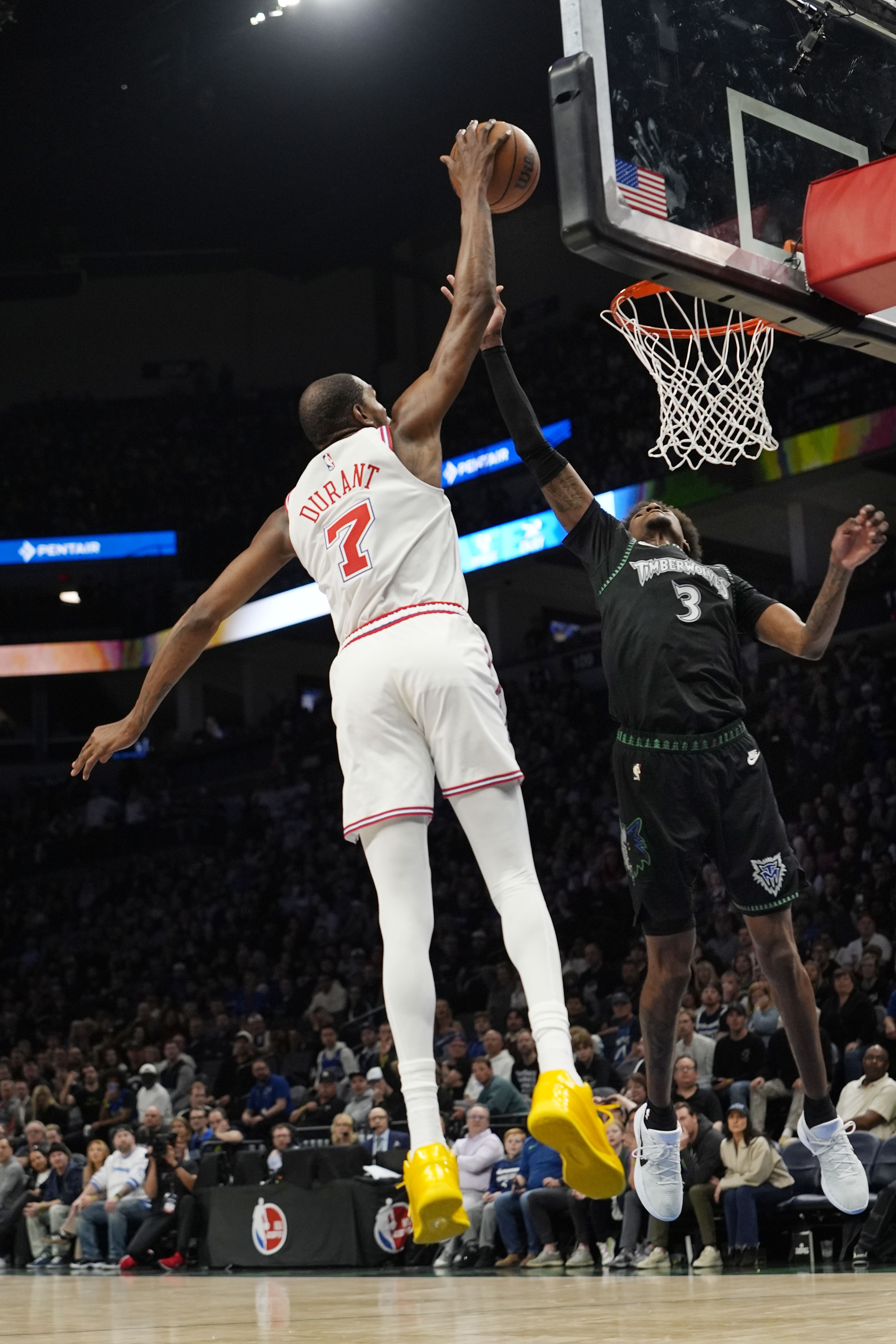 本场比赛,杜兰特前三节进攻端被针对性防守,打得非常难受,效率也不佳;末节他找回状态连续暴扣拖入加时,加时赛还命中三分,但关键绝平罚球罚丢,最终球队饮恨。