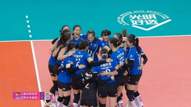 本场比赛中,上海光明优倍队25-23、25-19、25-19战胜江苏中天钢铁队,这是上海女排队史联赛第六冠,更是自2001年五连冠后,时隔25年再度登顶。